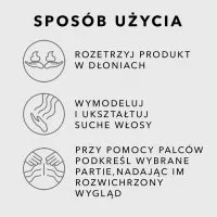Rozetrzyj niewielką ilość pasty w dłoniach, a następnie aplikuj na suche lub wilgotne włosy, modelując fryzurę wedle uznania. Dzięki kremowej konsystencji, produkt jest łatwy w aplikacji i zapewnia pełną kontrolę nad stylizacją.