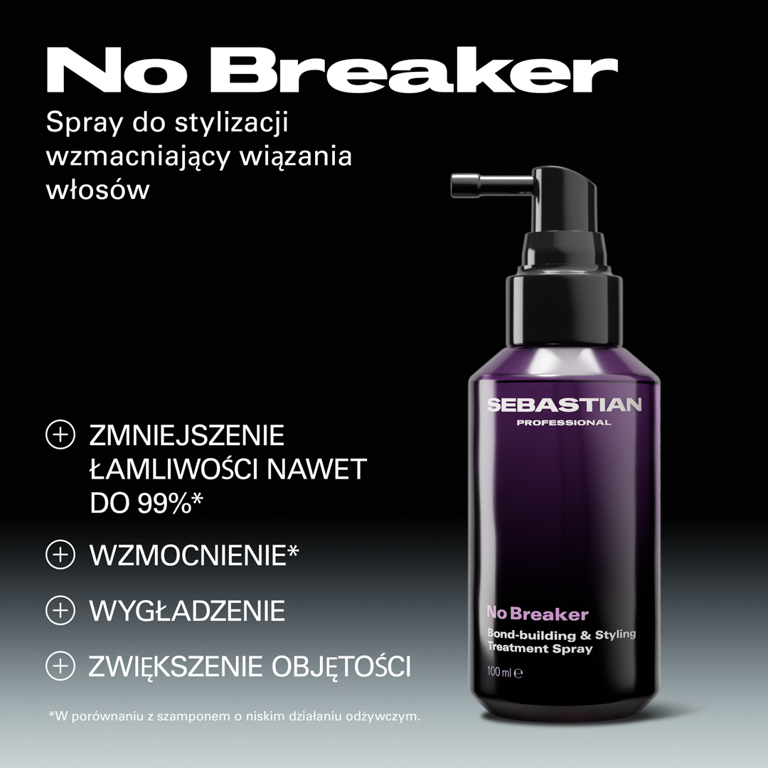 Poznaj Sebastian No Breaker – innowacyjny spray do stylizacji, który łączy w sobie kurację odbudowującą i produkt do stylizacji włosów. Dzięki nowoczesnej technologii opartej na kwasie jabłkowym, produkt ten zapewnia do 99% mniej złamań włosów* oraz widocznie wzmacnia, wygładza i dodaje objętości nawet najbardziej wymagającym pasmom. To idealne rozwiązanie dla osób poszukujących skutecznej regeneracji i perfekcyjnego wykończenia fryzury w jednym kroku.