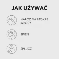 Nałóż na mokre włosy, dokładnie spień, a następnie spłucz. Powtórz w razie potrzeby, aby uzyskać najlepsze efekty.