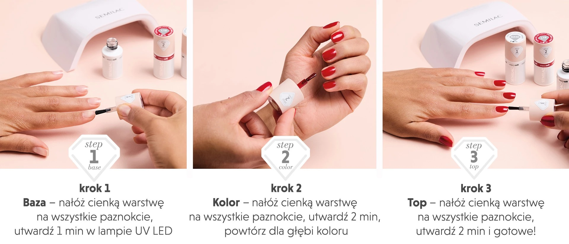 Łatwa aplikacja – doskonały wybór także dla osób rozpoczynających przygodę z manicure hybrydowym