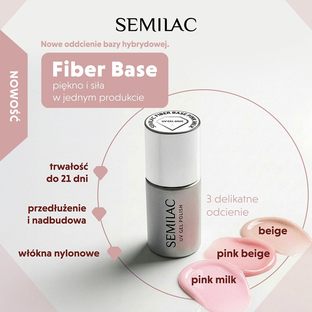 Semilac Fiber Base Beige – baza hybrydowa z włóknami nylonowymi