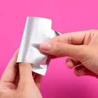 - Owiń paznokieć folią, aby utrzymać wacik na miejscu.