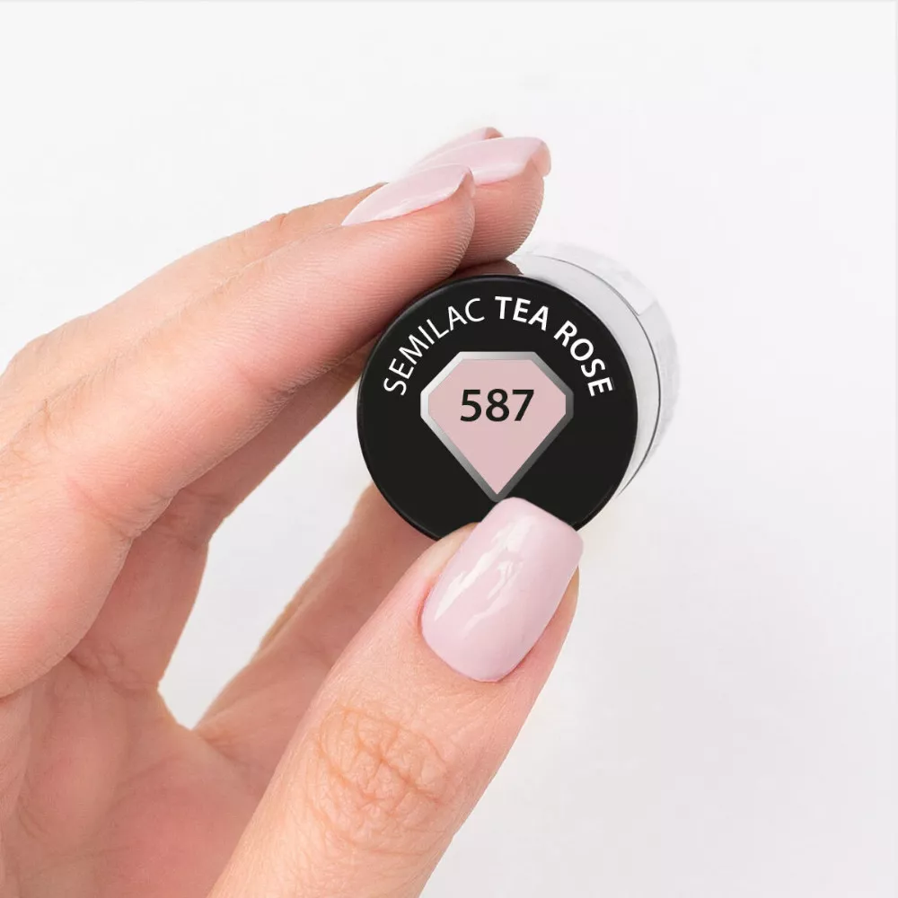 Odkryj piękno i trwałość dzięki Semilac lakierowi hybrydowemu 587 Tea Rose. Ten wyjątkowy lakier łączy w sobie zalety tradycyjnego lakieru do paznokci i żelu UV, oferując doskonałe krycie i niezrównaną jakość dzięki wysokiej jakości pigmentom.