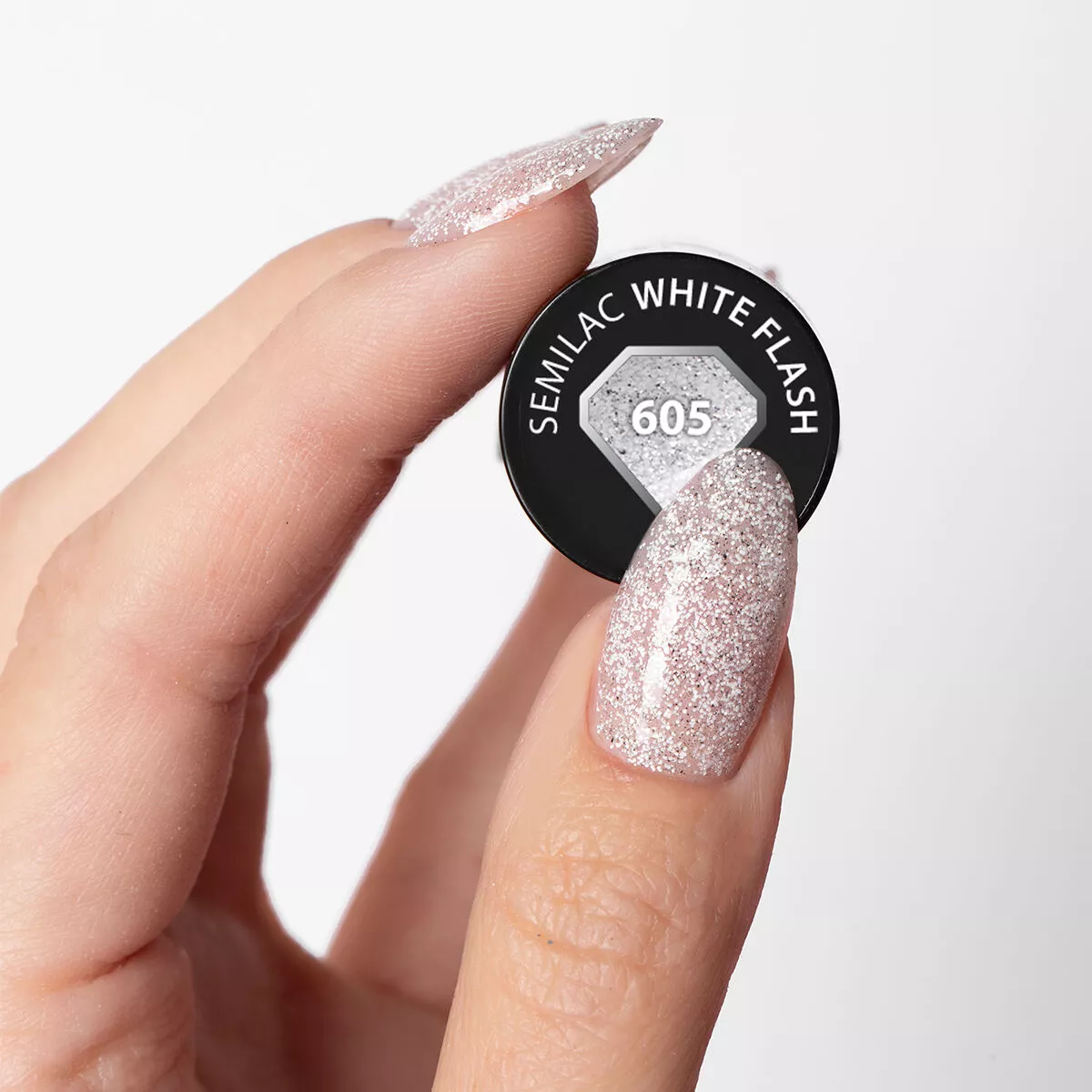 Semilac 605 White Flash to lakier, który spełni oczekiwania najbardziej wymagających użytkowników, oferując wyjątkowy blask i trwałość. Dodaj go do swojej kolekcji i ciesz się pięknem perfekcyjnie wykonanej stylizacji paznokci. Zamów już dziś i odkryj, jak Semilac może odmienić Twój manicure!