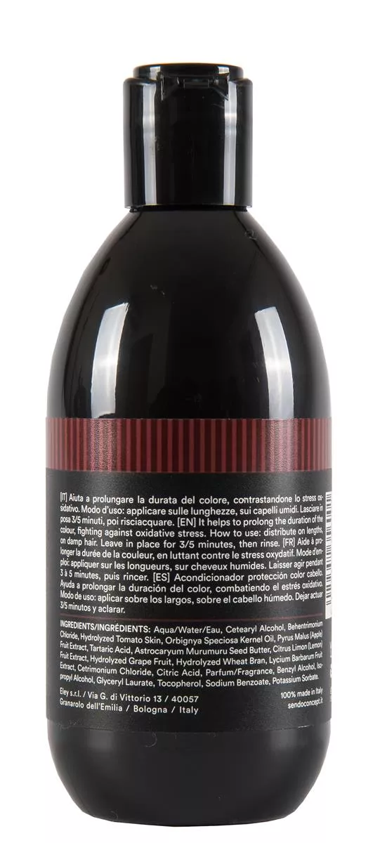 Aqua/Water/Eau, Cetearyl Alcohol, Behentrimonium Chloride, Hydrolyzed Tomato Skin, Orbignya Speciosa Kernel Oil, Pyrus Malus (Apple) Fruit Extract, Tartaric Acid, Astrocaryum Murumuru Seed Butter, Citrus Limon (Lemon) Fruit Extract, Hydrolyzed Grape Fruit, Hydrolyzed Wheat Bran, Lycium Barbarum Fruit Extract, Cetrimonium Chloride, Citric Acid, Parfum/Fragrance, Benzyl Alcohol, Isopropyl Alcohol, Glyceryl Laurate, Tocopherol, Sodium Benzoate, Potassium Sorbate.