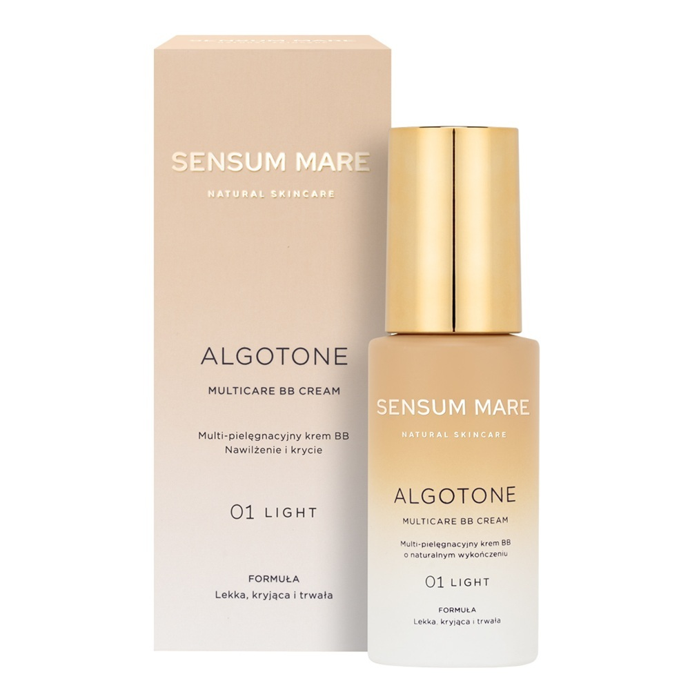 Sensum Mare Algotone multi-pielęgnacyjny krem BB do twarzy 01 Light 30ml to wyjątkowe połączenie lekkiego makijażu i zaawansowanej pielęgnacji skóry w jednym produkcie. Krem zapewnia naturalny wygląd cery, skutecznie wyrównuje koloryt, maskuje drobne niedoskonałości, a jednocześnie dba o odpowiedni poziom nawilżenia i ochronę przed szkodliwym promieniowaniem UV. Dzięki mineralnym pigmentom pochodzenia naturalnego krem BB Sensum Mare inteligentnie dopasowuje się do jasnych odcieni skóry, nie pozostawiając różowych tonów.