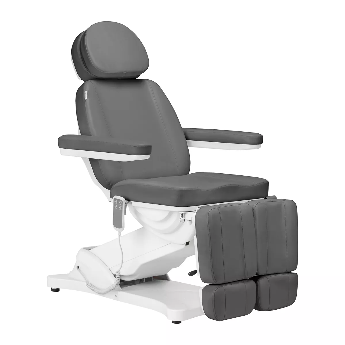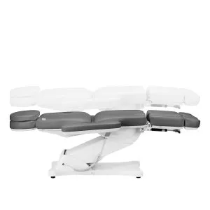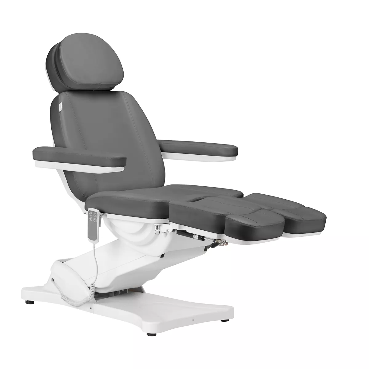 Fotel doskonale przystosowany jest do wykonywania zabiegów podologicznych – dzielony podnóżek ułatwia komfortowe przeprowadzenie usług, pozwalając na niezależne układanie pozycji nóg. Kąty, pod jakimi znajdują się jego części, regulowane są manualnie. Specjalnie zaprojektowany mechanizm pozwala na odchylanie podnóżków również na boki. Wysunięcie podnóżka również można dostosowywać, co zapewni lepsze podparcie wyższym użytkownikom. Wszystkie te cechy zapewniają wysoki komfort korzystania.