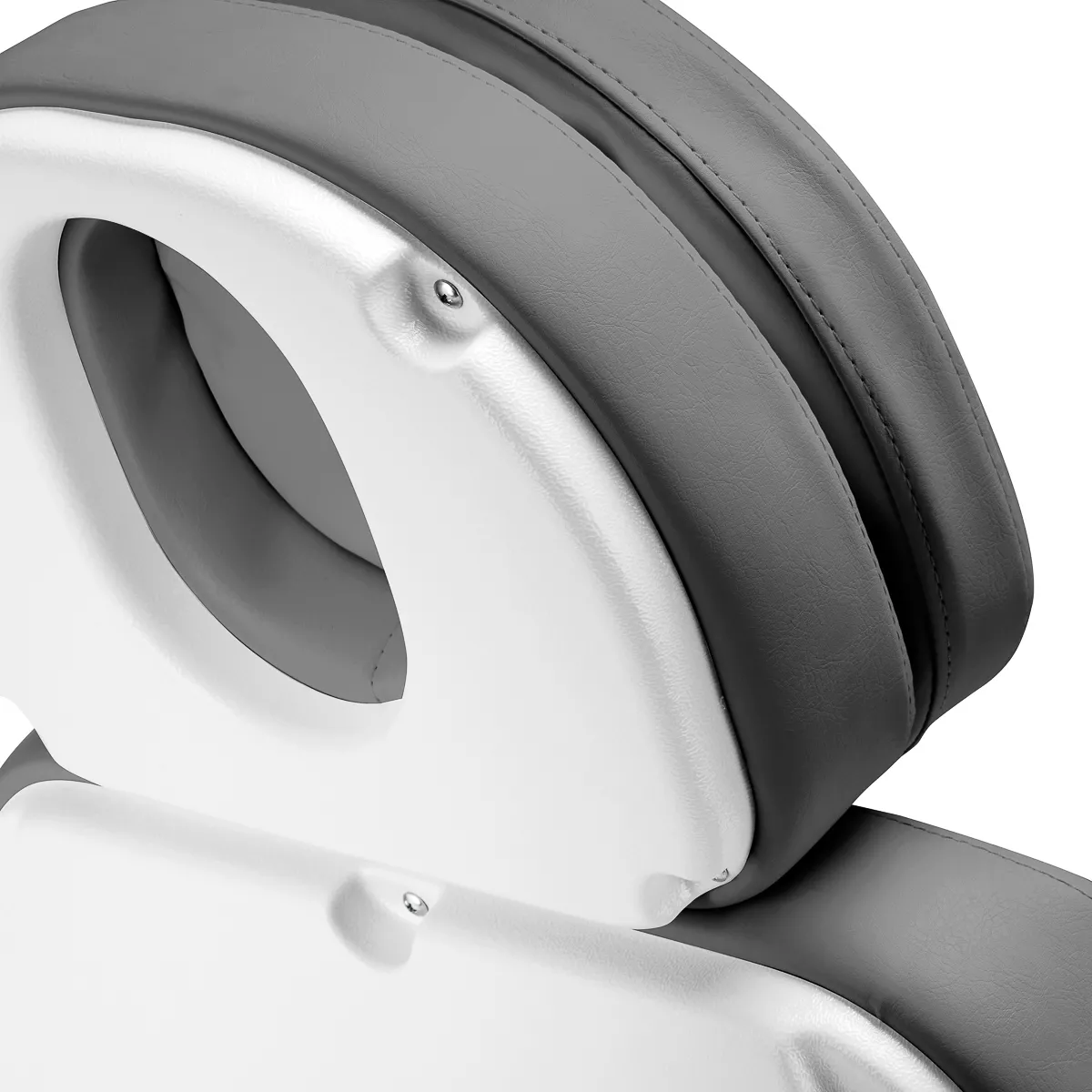 Wysuwany zagłówek pomaga dostosować sprzęt do potrzeb użytkowników o różnym wzroście, zapewniając stabilne wsparcie głowy w trakcie zabiegów. Możliwe jest również dostosowywanie wysunięcia podnóżka, co sprawdzi się zwłaszcza w trakcie zabiegów wykonywanych na wyższych osobach, zapewniając im lepsze podparcie. Podłokietniki są ruchome w zakresie 180º, dzięki czemu ułatwiają sprawne zajęcie miejsca na fotelu i zapewniają komfortowy dostęp osobie wykonującej zabieg. W razie potrzeby możliwy jest łatwy i szybki ich demontaż.