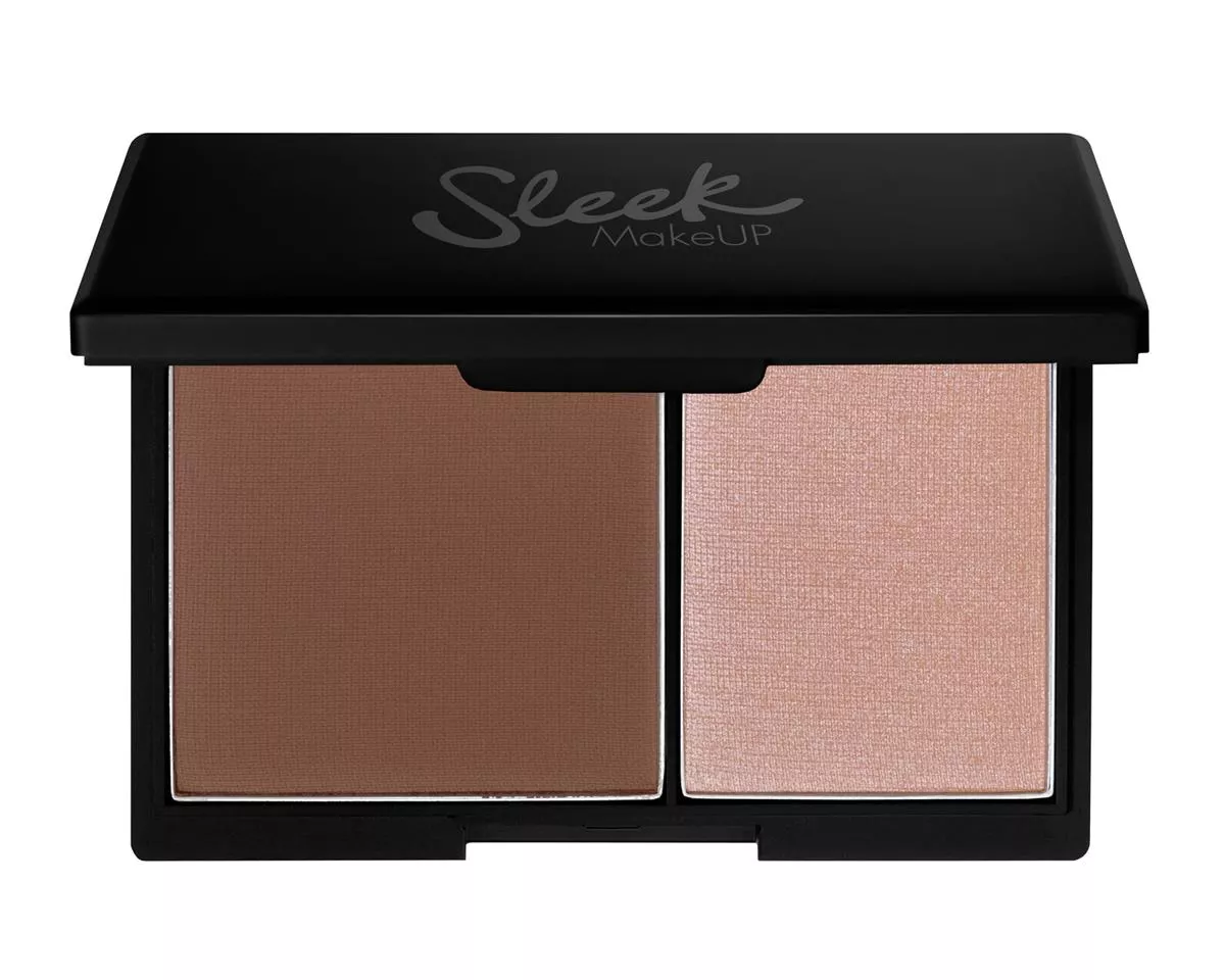 Sleek Makeup Face Contour Kit, paleta do konturowania 2 w 1 bronzer+rozświetlacz, Light