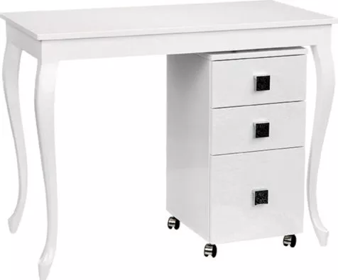 Blat stolika oraz szafka wykonane z płyty meblowej dostępnej w kilkunastu kolorach. Szuflady wyposażone zostały w ekskluzywne chromowane uchwyty z ciekawym wzorem. Nogi stolika dostępne wg próbnika lakierów AYALA.