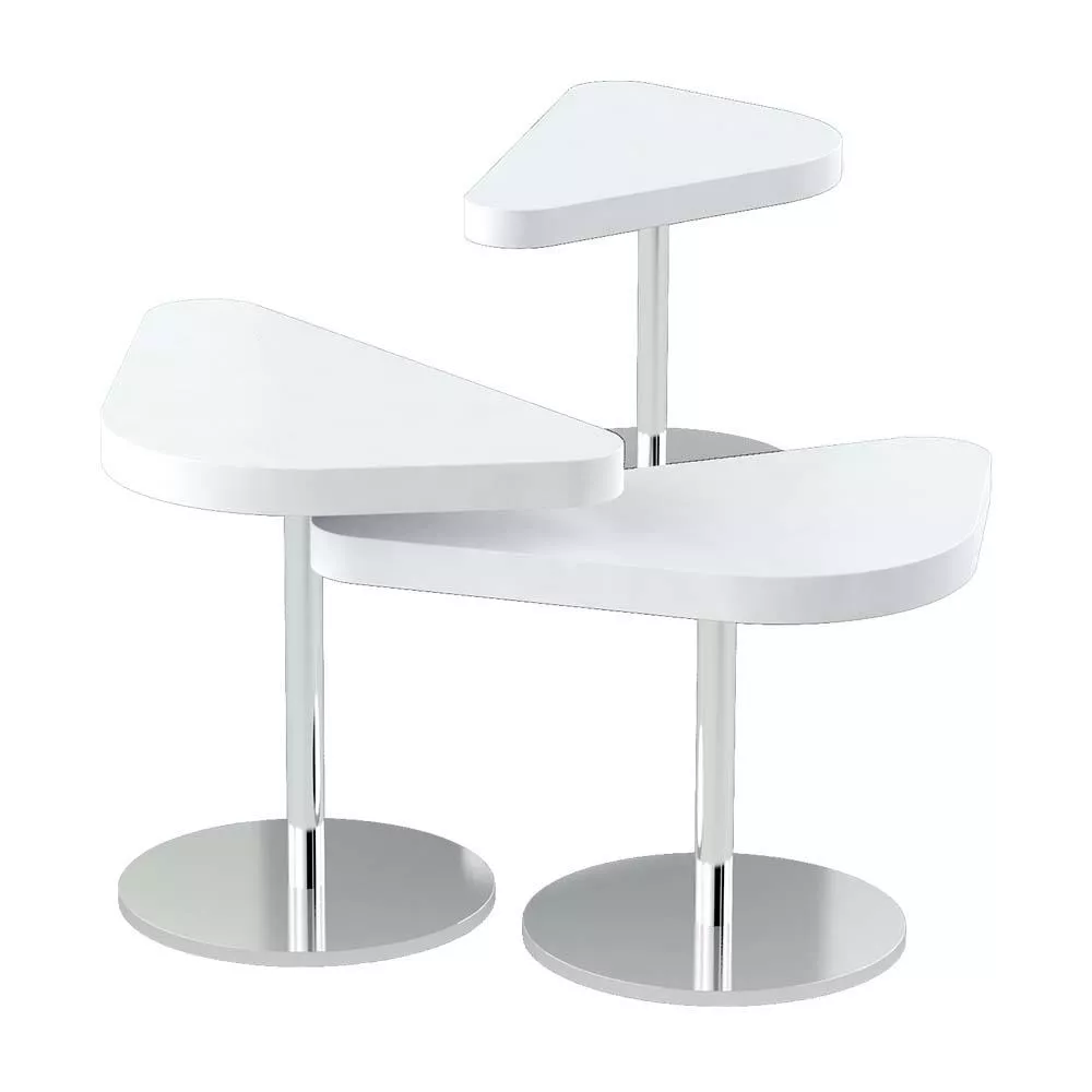 Stolik wykonany jest z płyty akrylowej o wysokim połysku, osadzony na chromowanej podstawie.