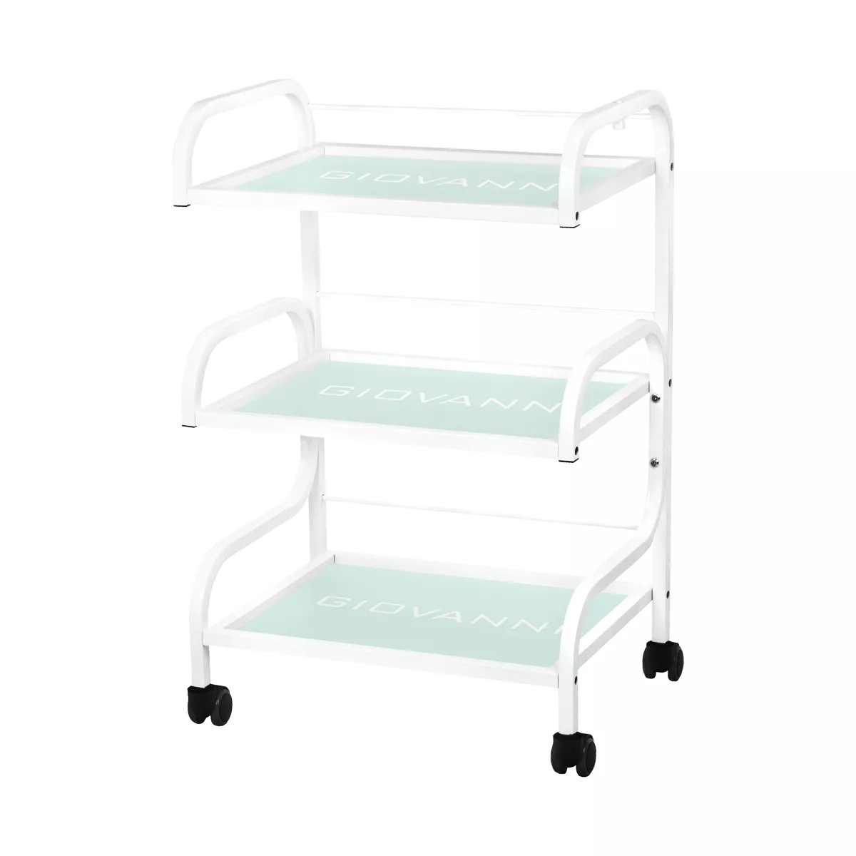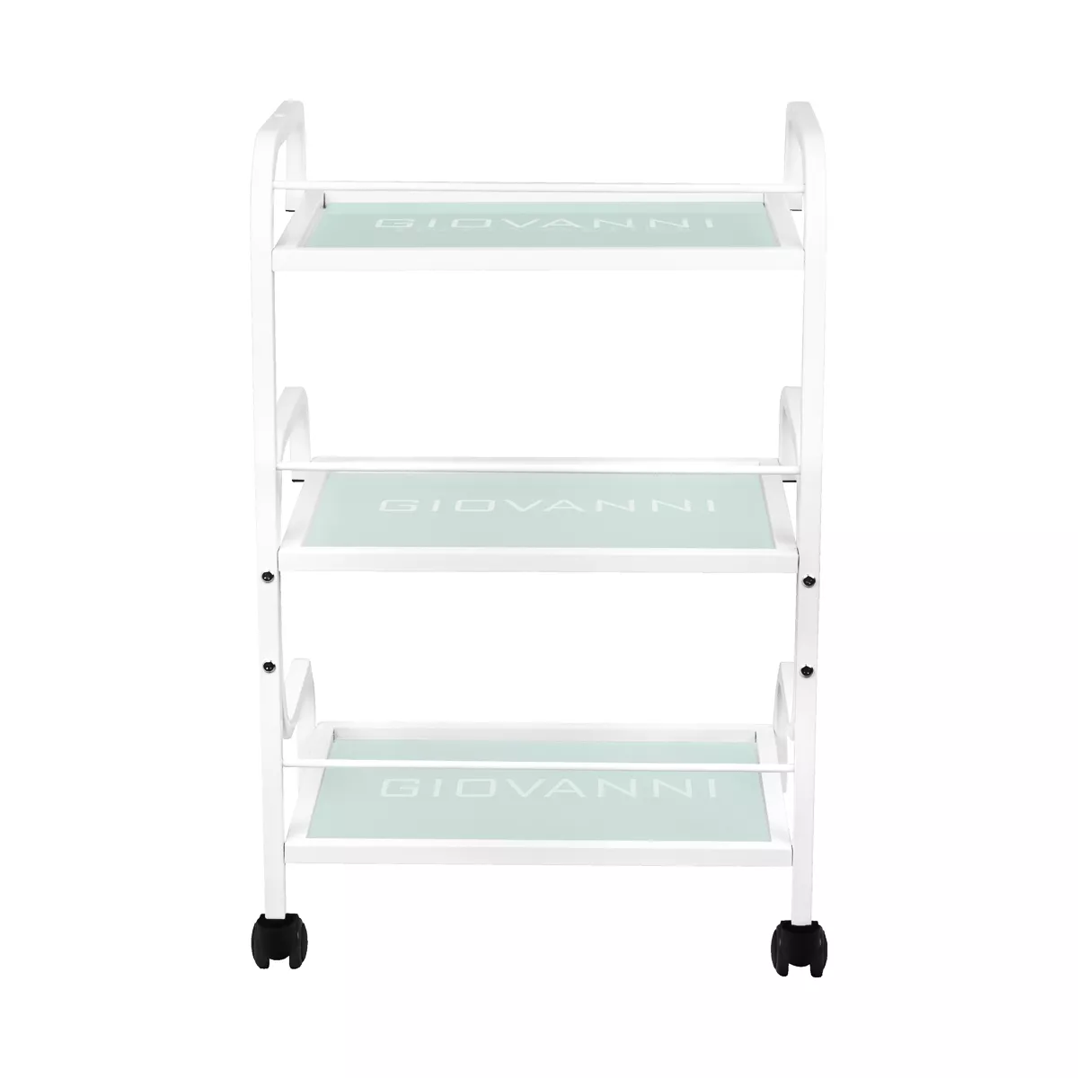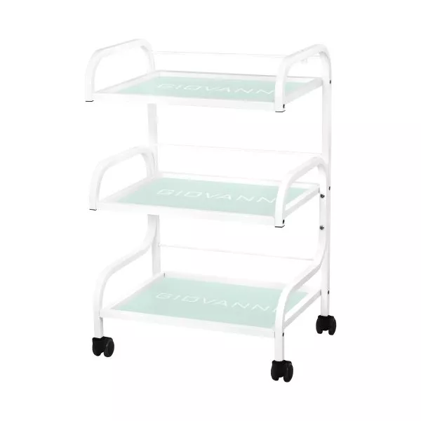 - Trzy szklane półki z grawerowanym logo GIOVANNI, które dodają prestiżu i profesjonalizmu.