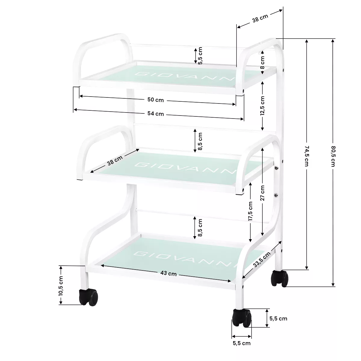 Odkryj elegancję i funkcjonalność z naszym stolikiem kosmetycznym typ 1014 Giovanni, który został stworzony z myślą o profesjonalnych salonach kosmetycznych i wymagających użytkownikach domowych. Ten estetyczny i praktyczny stolik pod urządzenia kosmetyczne łączy w sobie nowoczesny design z solidnym wykonaniem, co czyni go idealnym wyborem dla każdego, kto ceni sobie jakość i styl.
