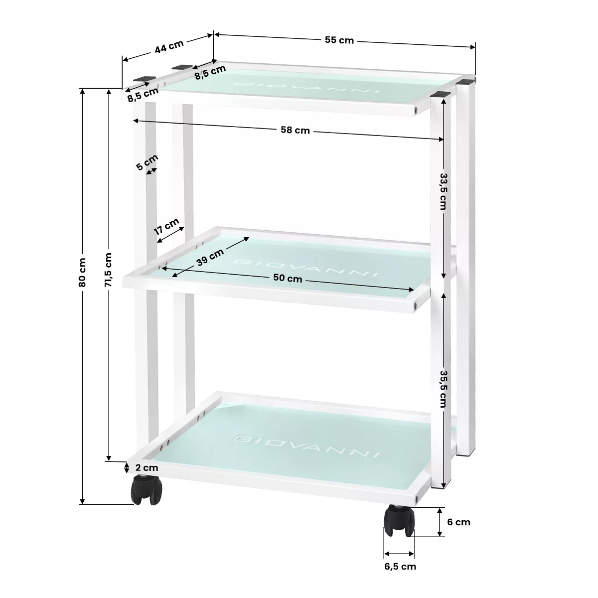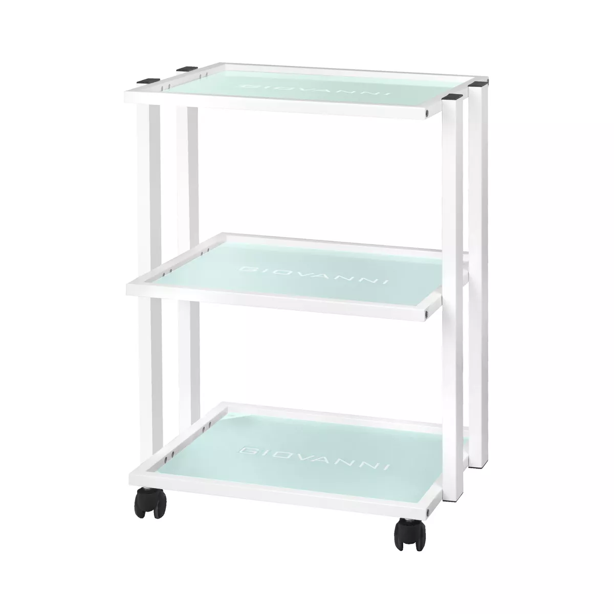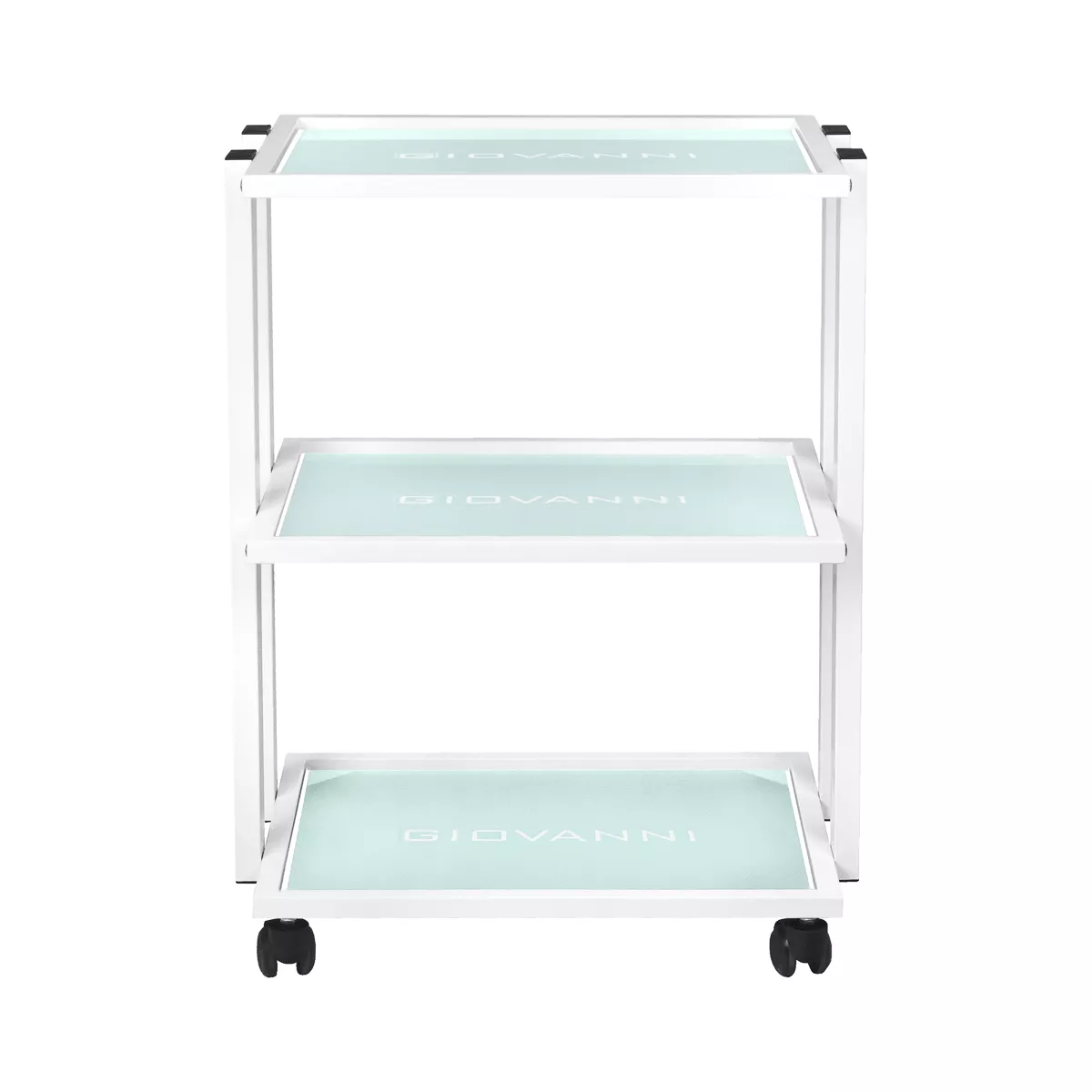 - Eleganckie wykończenie: Trzy szklane półki z wygrawerowanym logo GIOVANNI dodają klasy i nowoczesności.