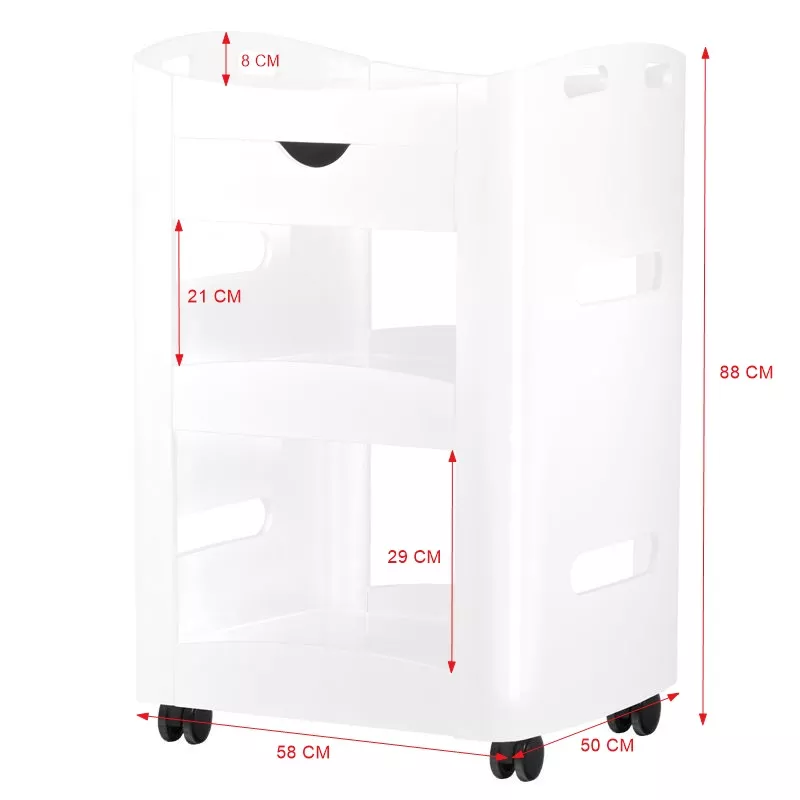 - Łatwość przemieszczania: cztery kółka pozwalają na swobodne przesuwanie stolika w dowolne miejsce.