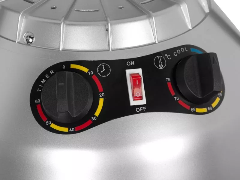 - Możliwość ustawienia czasu pracy od 0 do 60 minut, zapewniając pełną kontrolę nad procesem suszenia.