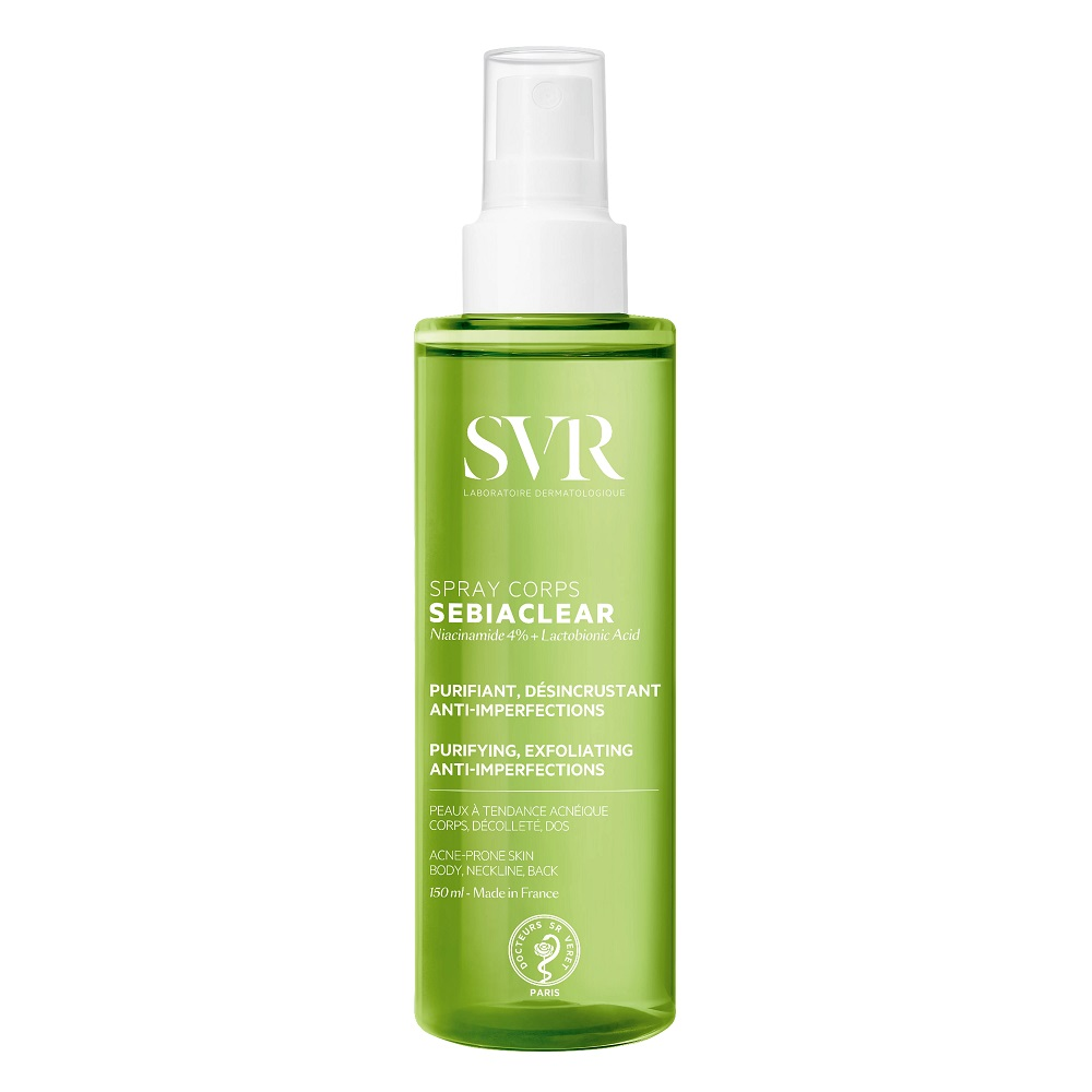 SVR Sebiaclear przeciwtrądzikowy spray do ciała 150ml to innowacyjny preparat przeznaczony do pielęgnacji skóry pleców, ramion i dekoltu ze skłonnością do trądziku. Zaawansowana formuła produktu zapewnia kompleksowe działanie: skutecznie redukuje zmiany trądzikowe, wygładza strukturę skóry oraz zapobiega powstawaniu nowych niedoskonałości. Już po 14 dniach regularnego stosowania możesz zauważyć aż o 40% mniej wyprysków?, co pozwoli Ci cieszyć się zdrową, gładką skórą i większą pewnością siebie każdego dnia.