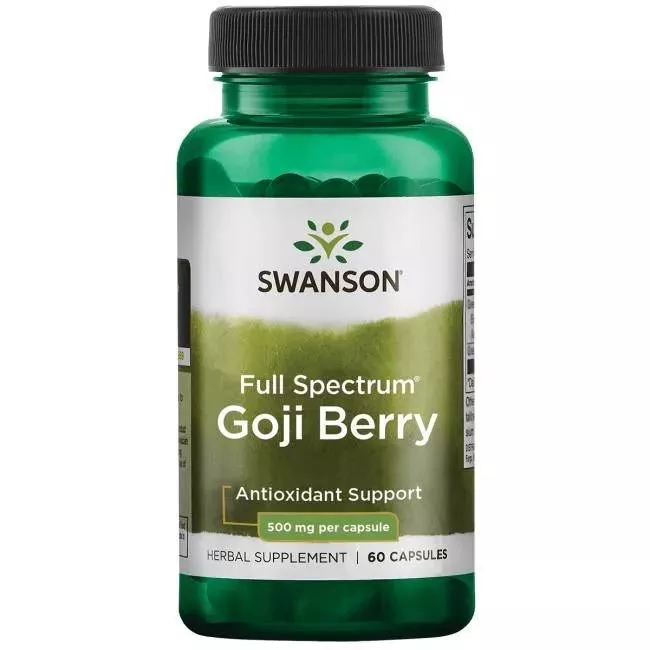 Swanson FS Goji 500mg to suplement diety w formie kapsułek, który dostarcza cennych składników odżywczych pochodzących z owoców goji (Lycium Barbarum). Goji znane są ze swoich właściwości antyoksydacyjnych, wspierających ogólną kondycję organizmu i układ immunologiczny.