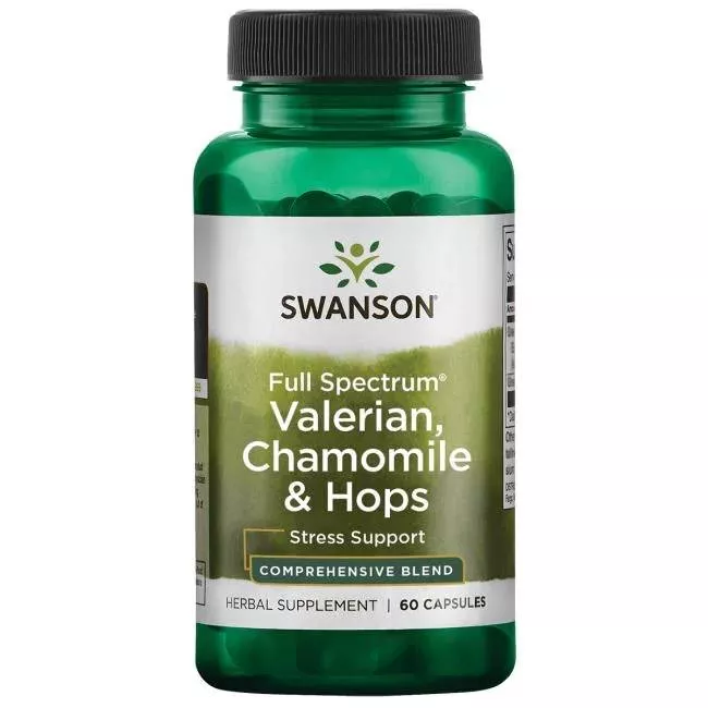 Swanson FS Waleriana Rumianek i Chmiel to suplement diety w formie kapsułek, który łączy w sobie właściwości trzech naturalnych składników: rumianku, chmielu i kozłka lekarskiego. Został stworzony z myślą o osobach dorosłych, które pragną wspomóc swoje samopoczucie, zredukować stres oraz osiągnąć stan relaksu. Każda kapsułka zawiera skoncentrowaną dawkę tych ziół, znanych ze swoich kojących właściwości.