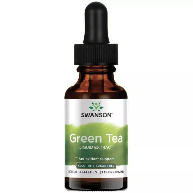 Swanson Green Tea Liquid Extract to wysokiej jakości suplement diety w postaci płynnego ekstraktu z zielonej herbaty (Camellia Sinensis) przeznaczony do codziennego stosowania. Produkt zawiera standaryzowany ekstrakt z liści zielonej herbaty, który dostarcza 7,5% polifenoli, co przekłada się na 75 mg polifenoli w każdej porcji. Jest to doskonałe wsparcie dla zdrowia serca oraz układu sercowo-naczyniowego.