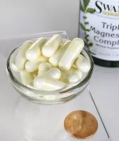 Suplement diety Swanson Triple Magnesium Complex to doskonały wybór dla osób poszukujących skutecznego wsparcia dla swojego organizmu. Zawiera trzy różne formy magnezu: tlenek magnezu, cytrynian magnezu oraz askorbinian magnezu, co zapewnia optymalną przyswajalność tego minerału. Regularne stosowanie może zapobiec deficytom magnezu, które mogą prowadzić do zmęczenia, osłabienia, spadków nastroju czy kurczy mięśni. Dodatkowo, suplementacja magnezem wspiera zdrowe paznokcie, włosy oraz odporność organizmu.