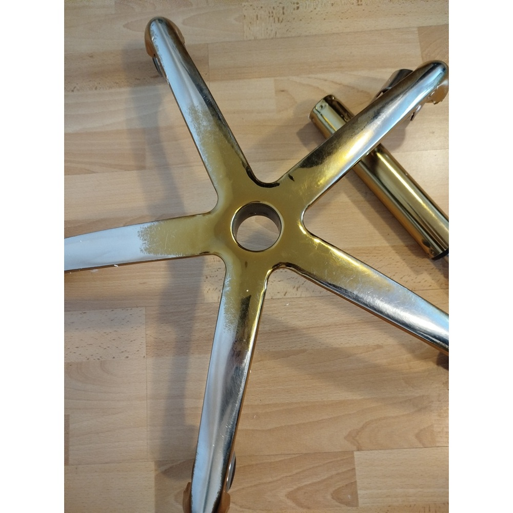 Stylowy taboret kosmetyczny Giovanni w eleganckim złoto-czarnym wykończeniu dostępny od ręki z dostawą w 48h, teraz w atrakcyjnej cenie outletowej. Przetarcia lakieru na podstawie są jedynie wizualne i nie wpływają na jego funkcjonalność ani komfort pracy.
