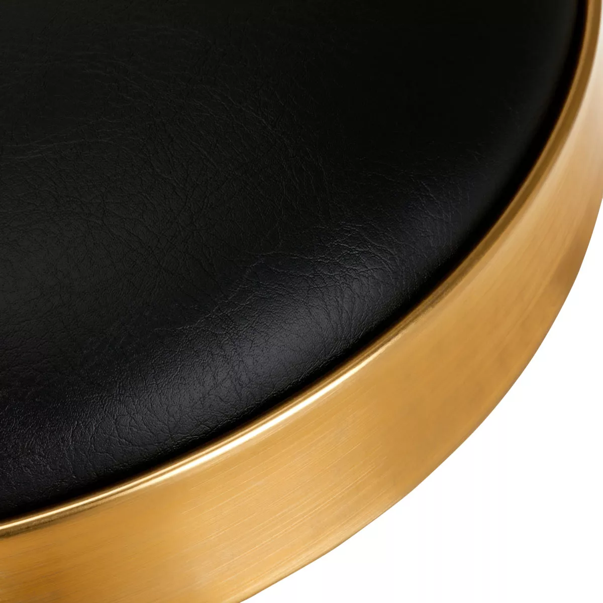 Ten złoty taboret ma wygodne czarne siedzisko pokryte skórą ekologiczną. Znajduje się na stabilnej pięcioramiennej podstawie. Stworzony ze stopów metali, jest trwały i odporny na zniszczenia. Wysokość siedziska jest sprawnie regulowana. Plastikowe kółka pozwalają na łatwą zmianę położenia. Siedzisko jest w pełni obrotowe.
