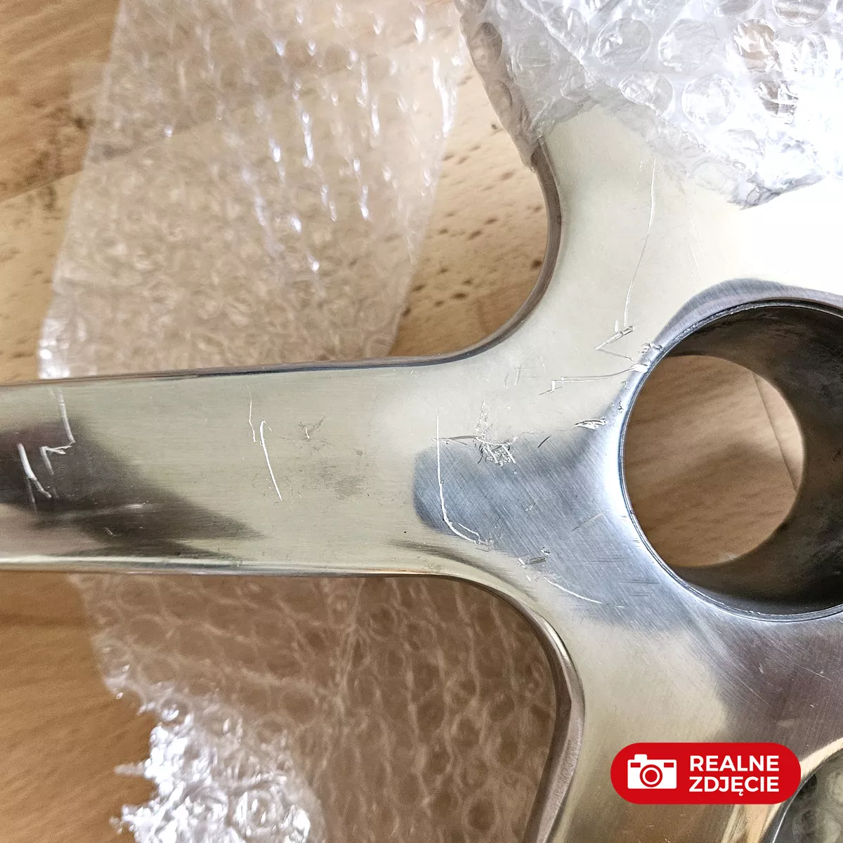 Produkt posiada zarysowania na podstawie (patrz zdjęcie) oraz zniszczone opakowanie - nie wpływa to na działanie produktu.