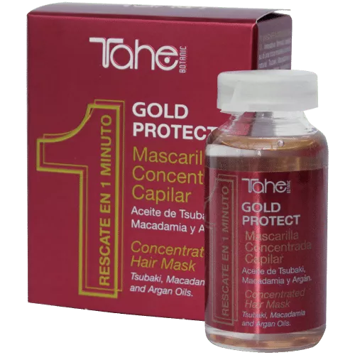 Odkryj doskonałość pielęgnacji włosów farbowanych z maską w ampułce Tahe Botanic Acabado, Gold Protect. Ta regenerująca maska express to idealne rozwiązanie dla wymagających włosów, które potrzebują natychmiastowego odżywienia i ochrony koloru. Dzięki unikalnej formule, opartej na trzech luksusowych olejach, Twoje włosy staną się gładkie, nawilżone i pełne blasku.