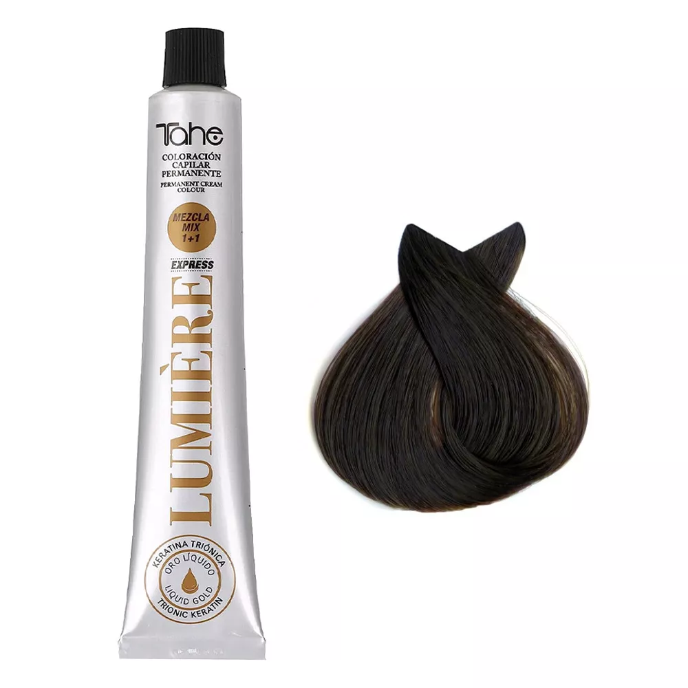Tahe Lumiere Express to innowacyjna farba do włosów, która łączy w sobie trwałość koloryzacji z intensywną pielęgnacją. Dzięki zawartości keratyny i olejku arganowego, ten produkt nie tylko nadaje włosom głęboki i lśniący kolor, ale również dba o ich zdrowie i kondycję.