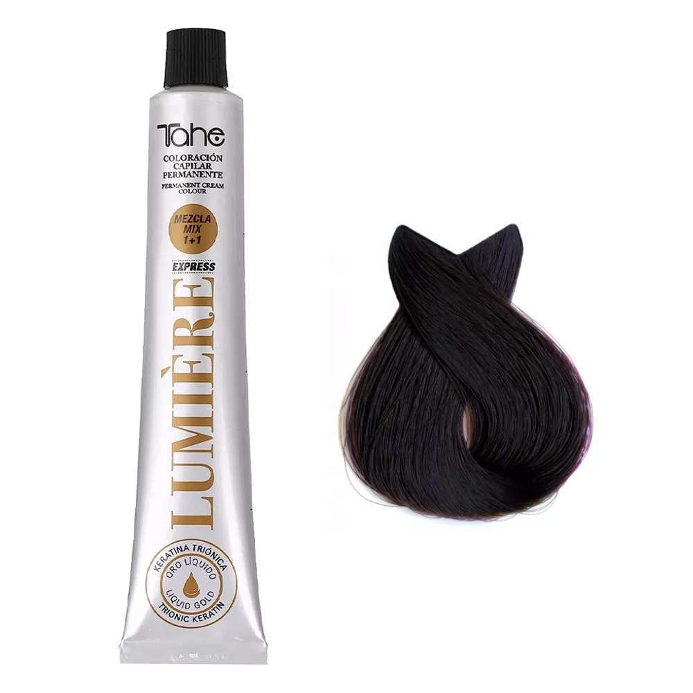 Tahe Lumiere Express to profesjonalna farba do włosów, która oferuje trwały, lśniący kolor dzięki innowacyjnej formule z keratyną i olejkiem arganowym. Idealna do uzyskania głębokiego, intensywnego koloru pełnego refleksów, zapewniając jednocześnie ochronę i pielęgnację włosów podczas procesu koloryzacji.