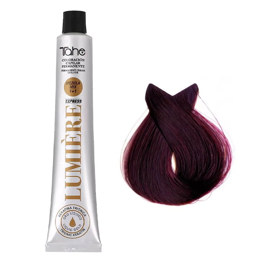 Odkryj profesjonalną koloryzację z farbą do włosów Tahe Lumiere Express! Ta trwała farba, wzbogacona keratyną i olejkiem arganowym, pozwala uzyskać intensywny, lśniący kolor o głębokich refleksach. Opatentowana technologia tri-jonowej keratyny zapewnia, że włosy są chronione i wzmacniane podczas farbowania, a jednocześnie nawilżane i odżywiane.
