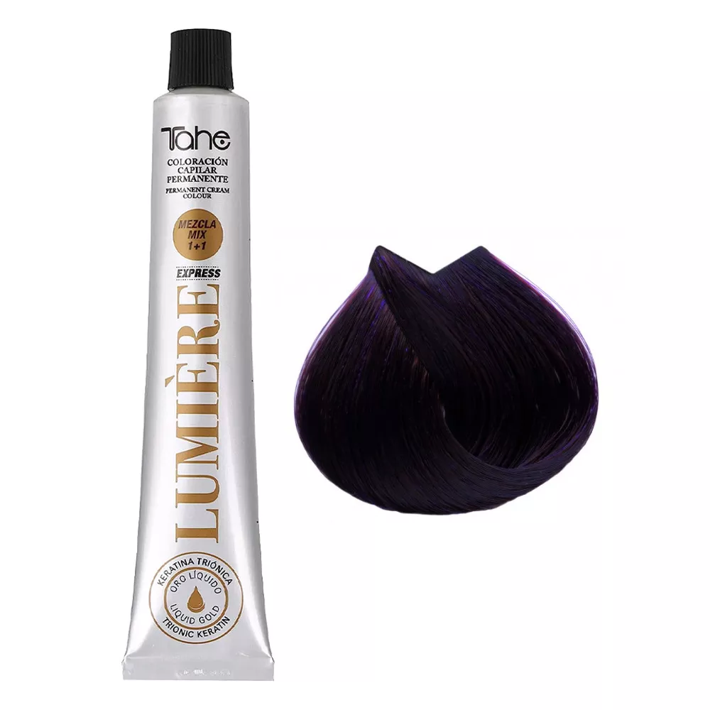 Tahe Lumiere Express to profesjonalna farba do włosów, która łączy w sobie technologię koloryzacji i intensywnej pielęgnacji. Jej unikalna formuła z tri-jonową keratyną oraz olejkiem arganowym zapewnia nie tylko trwały i lśniący kolor, ale także dba o zdrowie i wygląd Twoich włosów. Dzięki tej farbie uzyskasz kolor o głębokiej intensywności i pięknych refleksach, a włosy będą odżywione i nawilżone.