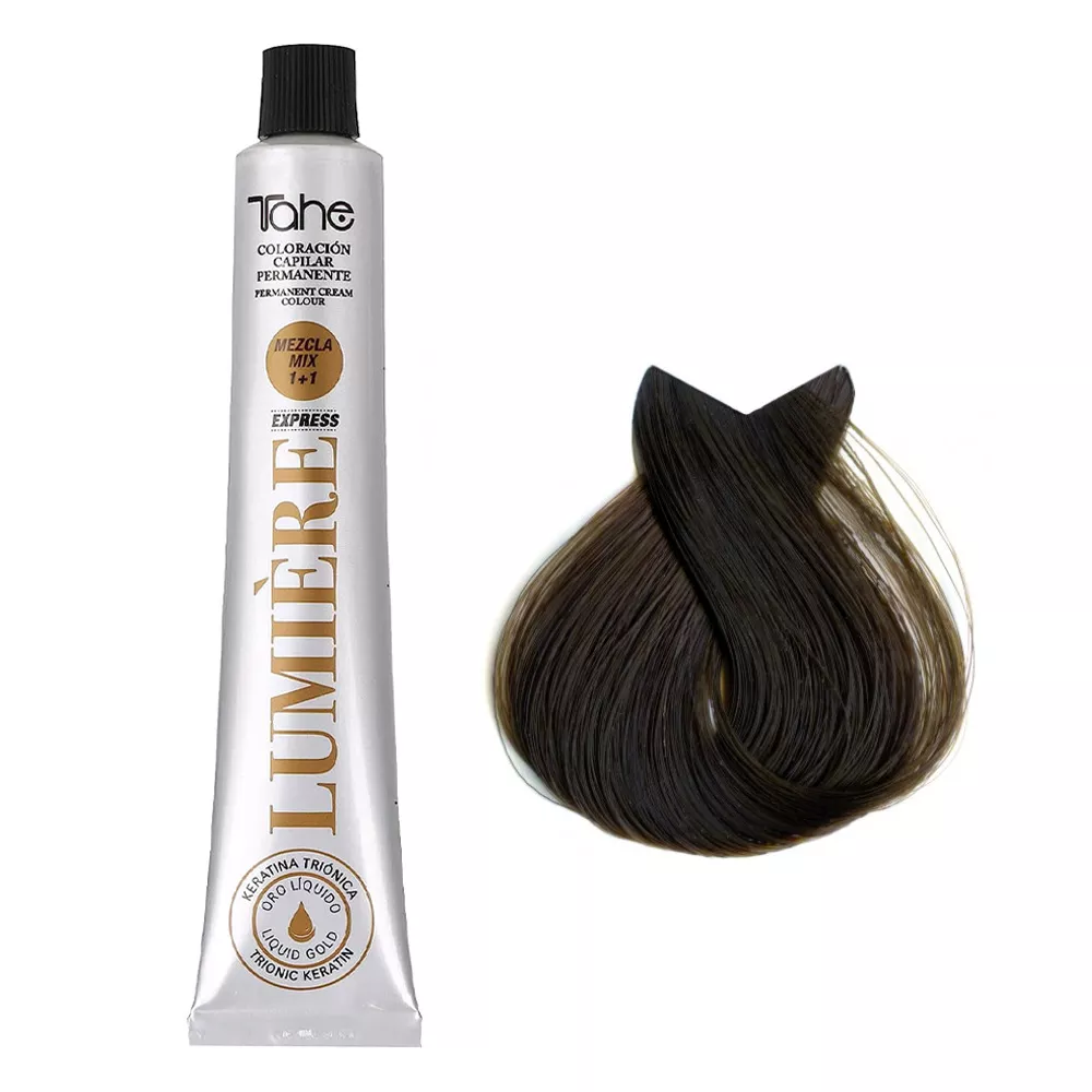 Tahe Lumiere Express to profesjonalna farba do włosów, która oferuje trwały i lśniący kolor dzięki innowacyjnej formule wzbogaconej keratyną i olejkiem arganowym. Zapewnia intensywną koloryzację, która nie tylko nadaje włosom piękną barwę, ale także dba o ich zdrowie i kondycję. Idealna dla tych, którzy pragną uzyskać głęboki, pełen refleksów kolor bez kompromisów.