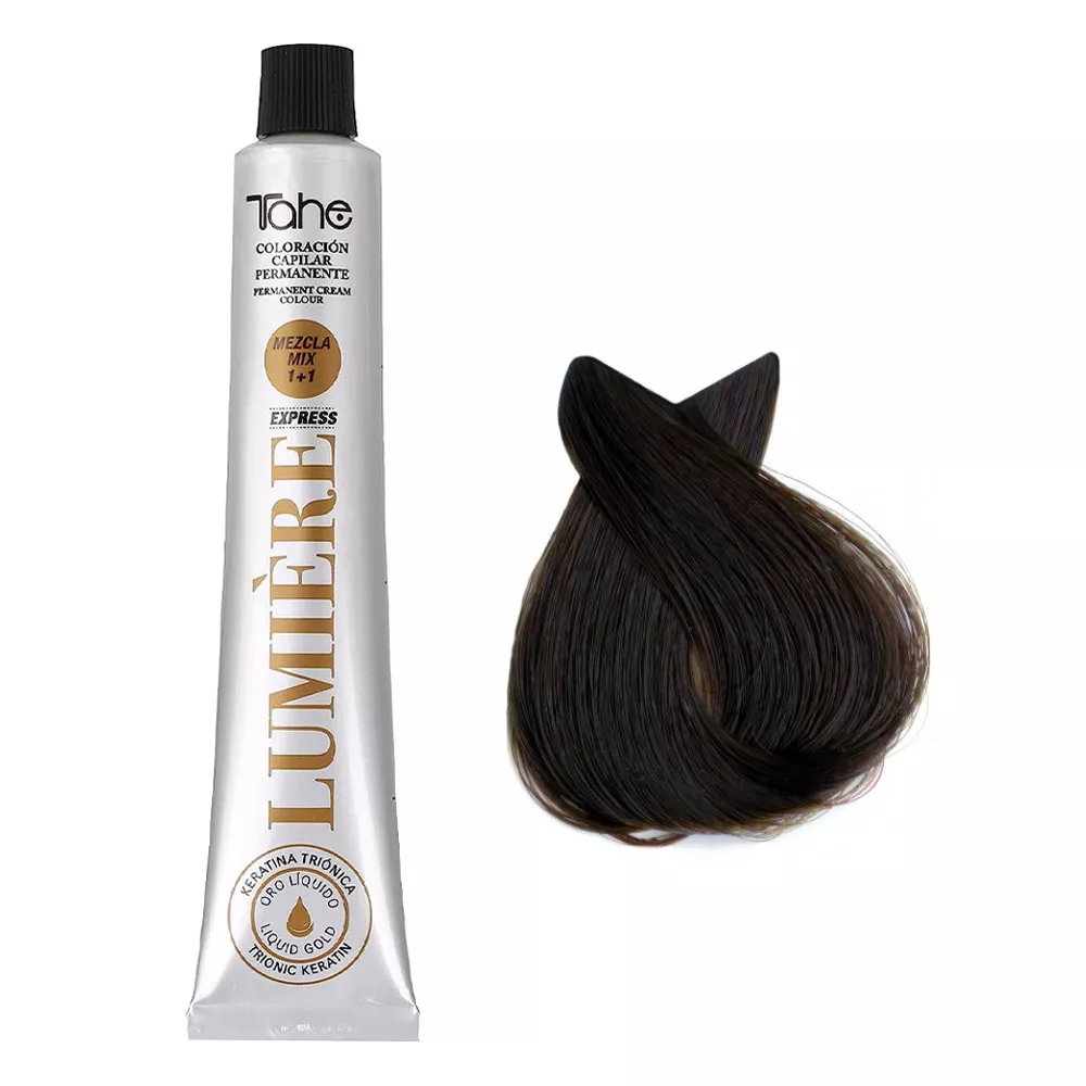 Tahe Lumiere Express to profesjonalna farba do włosów, która łączy w sobie moc keratyny i olejku arganowego, by dostarczyć trwałego, lśniącego koloru, jakiego zawsze pragnęłaś. Dzięki zaawansowanej technologii z tri-jonową keratyną, farba głęboko wnika w strukturę włosa, zapewniając ochronę i regenerację podczas procesu koloryzacji.