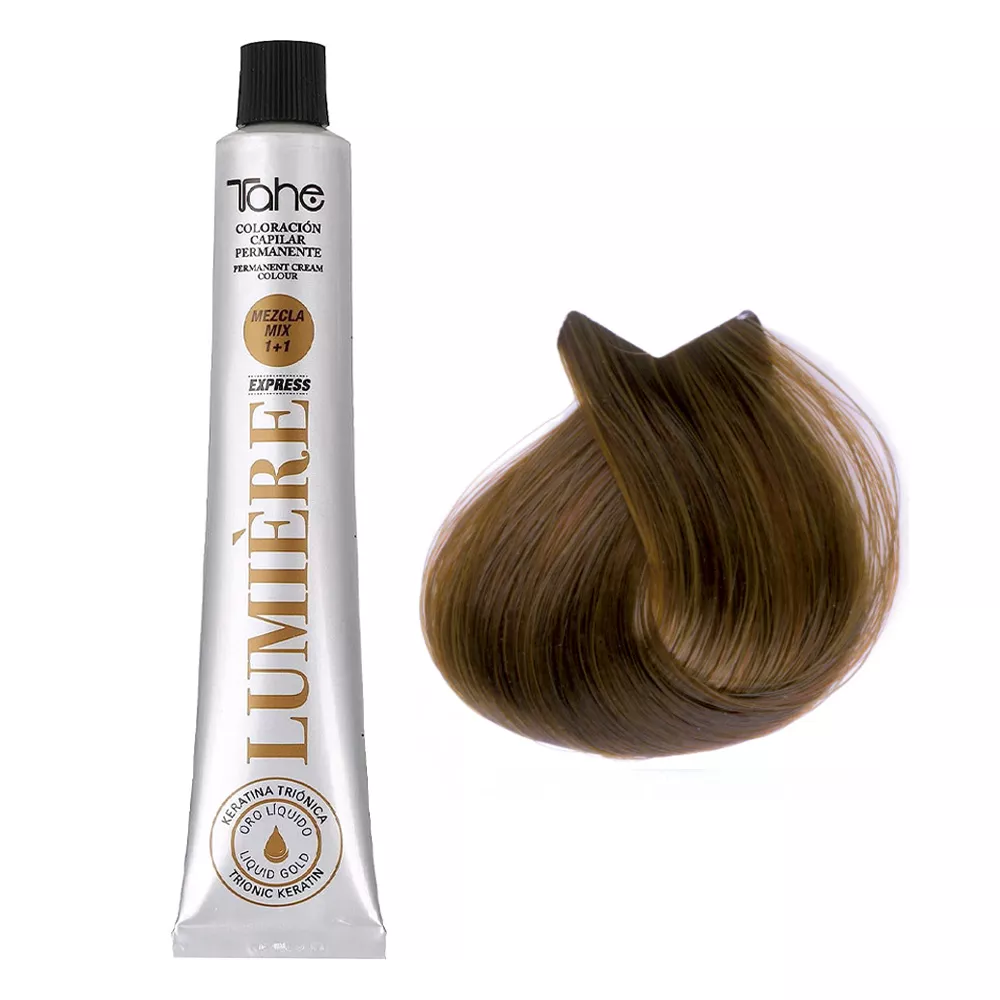 Tahe Lumiere Express to profesjonalna farba do włosów, która łączy trwałą koloryzację z odżywczą pielęgnacją. Dzięki innowacyjnej formule z tri-jonową keratyną oraz olejkiem arganowym, zapewnia nie tylko intensywny i lśniący kolor, ale także ochronę i nawilżenie włosów. Odkryj kolor 7.4, który doda Twoim włosom głębi i pięknych refleksów.