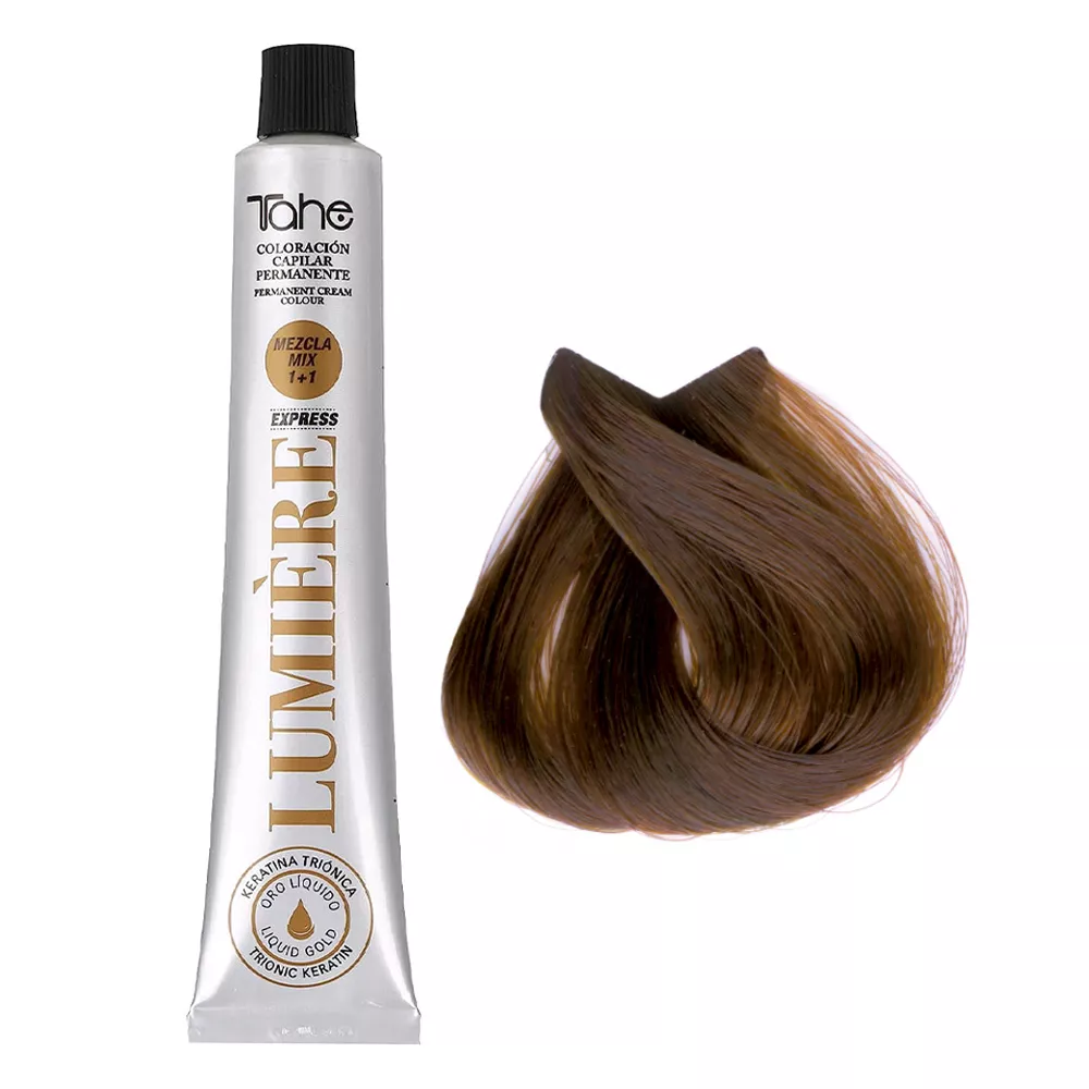 Tahe Lumiere Express to profesjonalna farba do włosów, która zapewnia trwały i lśniący kolor, jednocześnie dbając o zdrowie Twoich włosów. Dzięki innowacyjnej technologii z tri-jonową keratyną, farba nie tylko koloryzuje, ale również odżywia i chroni pasma przed zniszczeniem. Zanurz się w świecie intensywnych odcieni i pięknych refleksów, wybierając kolor 7.44.
