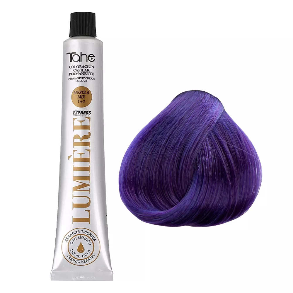 Tahe Lumiere Express to profesjonalna farba do włosów, która gwarantuje trwały i lśniący kolor. Unikalna formuła, wzbogacona o tri-jonową keratynę, stopniowo wbudowuje się w strukturę włosa, zapewniając ochronę przed zniszczeniem oraz intensywny połysk. Dodatkowo, zawartość olejku arganowego, bergamotkowego i kokosowego oraz ekstraktu z szałwii, dba o odpowiednie nawilżenie i odżywienie włosów.