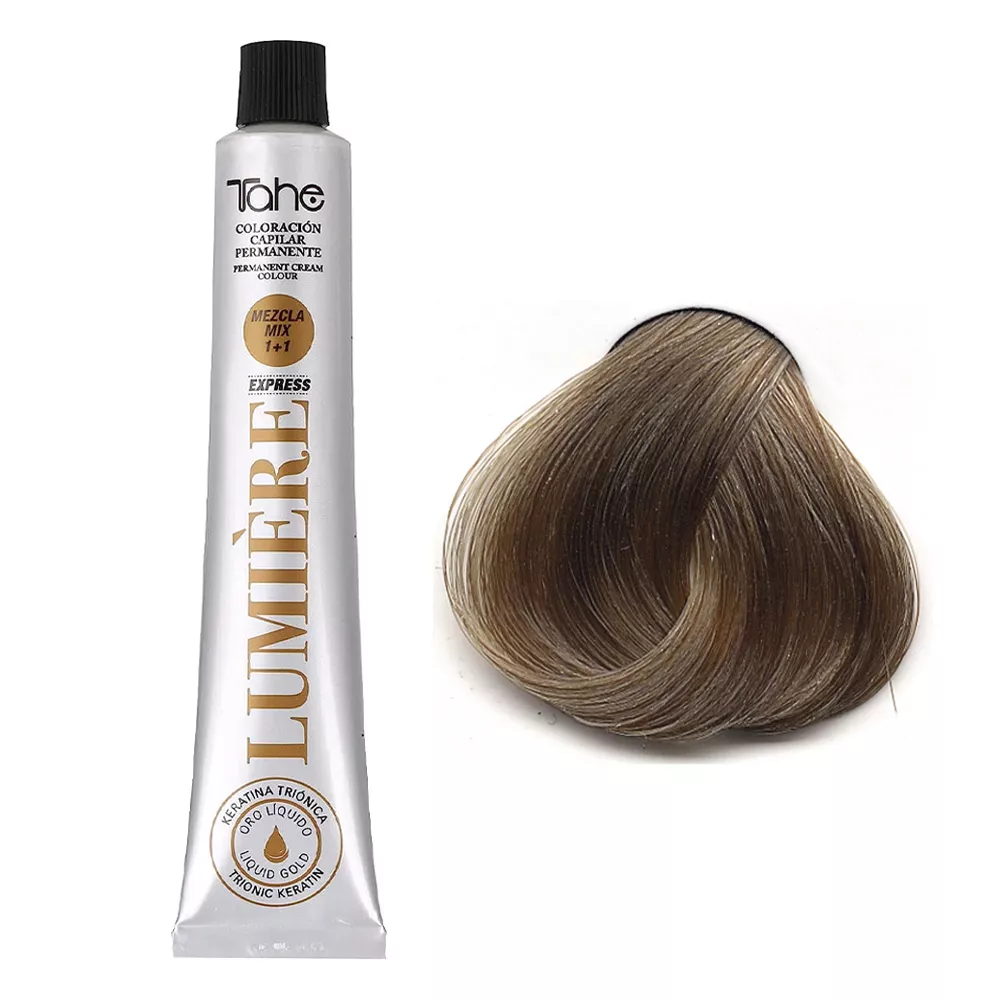 Odkryj moc koloryzacji z Tahe Lumiere Express – profesjonalną farbą do włosów, która łączy w sobie trwałość i intensywność koloru z wyjątkową pielęgnacją. Dzięki innowacyjnej technologii z tri-jonową keratyną, farba nie tylko nadaje Twoim włosom olśniewający kolor, ale również chroni i wzmacnia je podczas całego procesu farbowania.