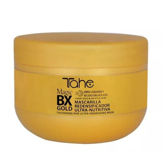 Odkryj sekret pięknych, zdrowo wyglądających włosów dzięki masce pogrubiającej Tahe Magic Bx Gold. Ten wyjątkowy kosmetyk został stworzony, aby przedłużyć efekty zabiegu botoksu na włosy, jednocześnie poprawiając ich jakość i wygląd. Twoje pasma staną się jedwabiste, elastyczne i łatwe do układania, zyskując blask i siłę, której zawsze pragnęłaś.