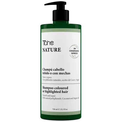 Odkryj doskonałość pielęgnacji włosów farbowanych z szamponem Tahe Nature, Coloured Hair. Ten bezsiarczanowy produkt został stworzony specjalnie dla włosów farbowanych lub z pasemkami, aby odżywiać, regenerować i przywracać im naturalny blask. Dzięki zawartości naturalnych polifenoli, oleju kokosowego, arganowego i geranium, szampon ten oferuje kompleksową pielęgnację, chroniąc włókna włosów przed uszkodzeniami. Zapewnij swoim włosom ochronę i odżywienie, jakiego potrzebują, jednocześnie dbając o środowisko dzięki opakowaniu w 100% nadającemu się do recyklingu.