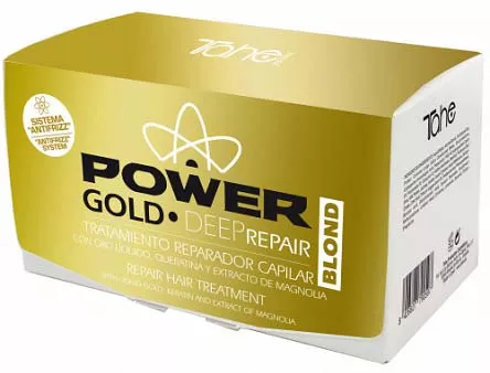 Odkryj moc pierwszych ampułek stworzonych specjalnie dla włosów blond, które eliminują problem puszenia się! Tahe Power Gold Blond to innowacyjna kuracja w ampułkach, która wygładza i intensywnie nawilża włosy, jednocześnie neutralizując niechciane refleksy koloru. Twoje włosy będą miękkie, elastyczne i pełne blasku.