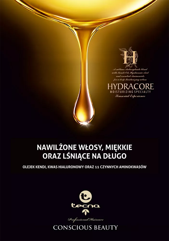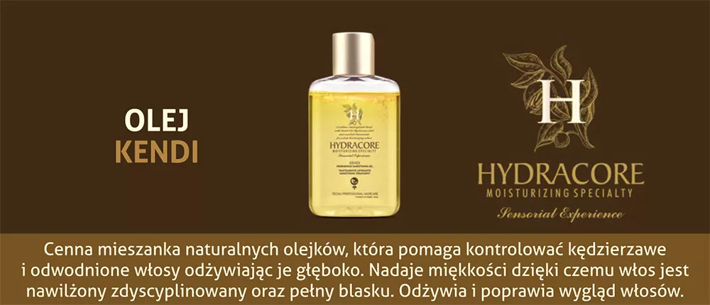 Olejek do włosów Tecna Hydracore Kendi działa jak odżywcze serum, idealne do włosów suchych i puszących się. Kosmetyk głęboko odżywia włosy i sprawia, że są miękkie i błyszczące, zdrowsze i łatwiejsze do stylizacji. Przy regularnym długotrwałym stosowaniu zapobiega łamaniu się włosów i strzępieniu się końcówek. Olejek jest bardzo delikatny, nie obciąża włosów, a wręcz przeciwnie, jest lekki. HYDRACORE KENDI OIL to luksusowa mieszanka naturalnych olejków, które pomagają ujarzmić puszące się i przesuszone włosy oraz dogłębnie je odżywić. Zawiera olej z otrębów ryżowych, olej kukurydziany, kwas hialuronowy i aż 11 aminokwasów.