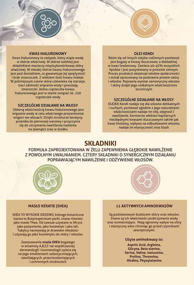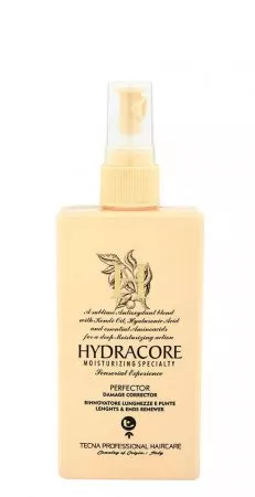Preparat uszczelniający łuski włosów Tecna Hydracore Perfector ma za zadanie dokonać transformacji włosów, które staną się gładkie, lśniące, miękkie i odżywione. Kosmetyk zawiera kwas hialuronowy, olejek kendi, masło shea i aminokwasy. Cały zabieg sprawia, że włosy są nawilżone, lśniące, elastyczne i wzmocnione. Ponadto są bardziej odporne na zniszczenia w przyszłości.