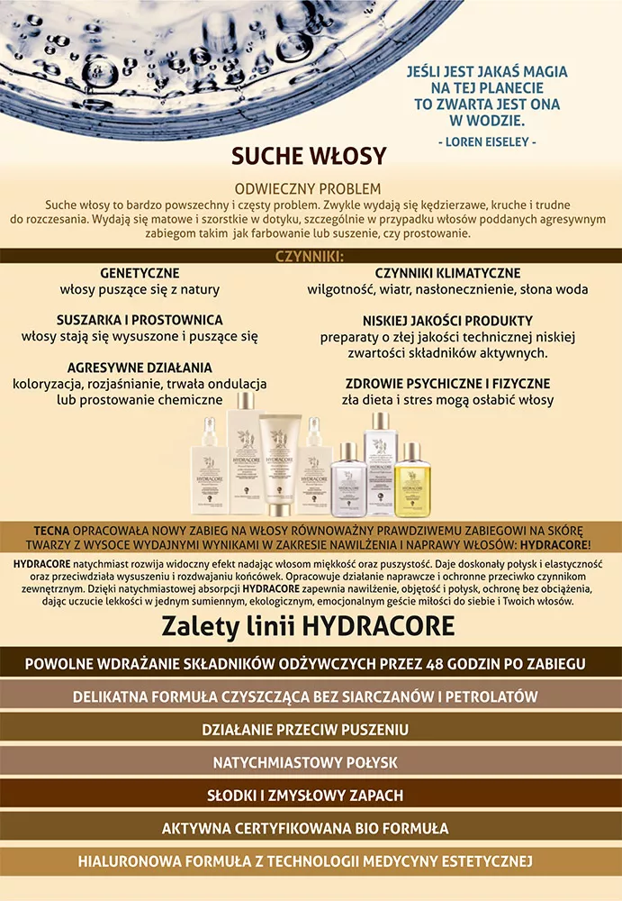 Działanie szamponu do włosów Tecna Hydracore: