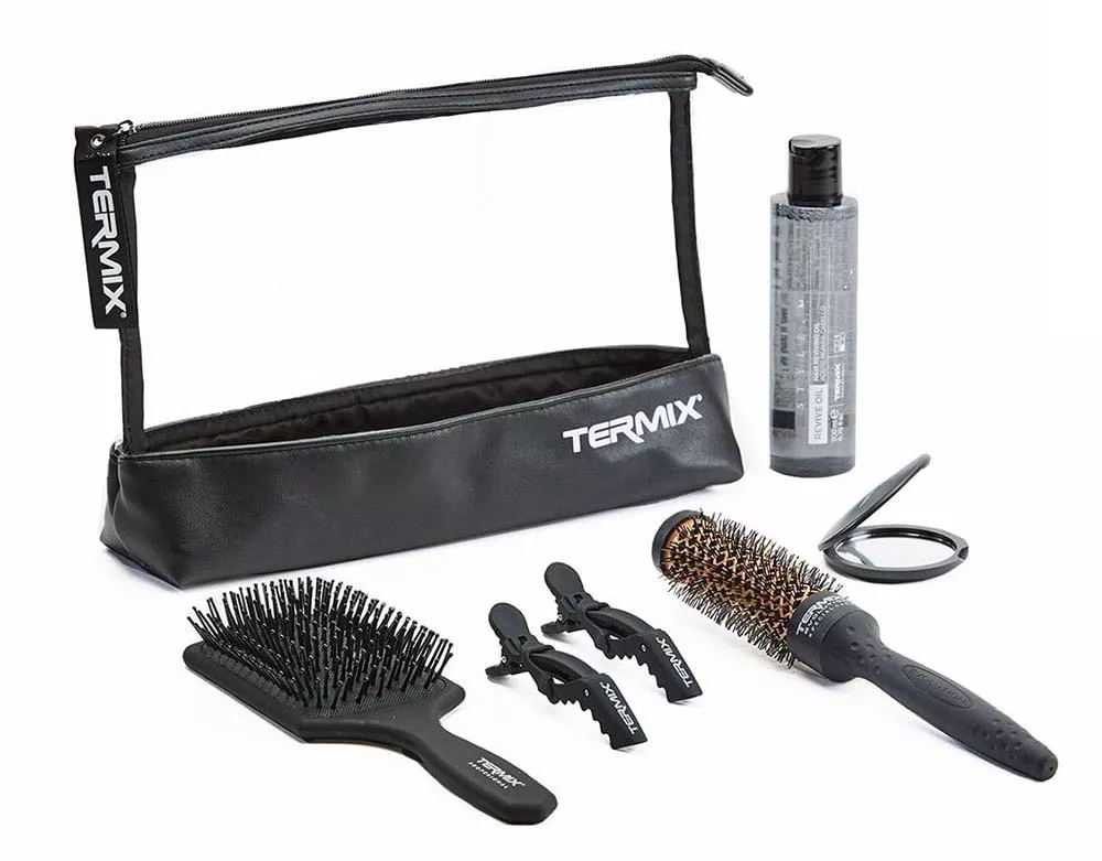 Odkryj pełen komfort stylizacji dzięki Termix Care, zestawowi akcesoriów do stylizacji włosów. Ten kompleksowy zestaw zawiera wszystko, co potrzebne, aby Twoje włosy wyglądały zdrowo i pięknie każdego dnia. W skład zestawu wchodzi ceramiczna szczotka okrągła, która doskonale modeluje włosy podczas suszenia, oraz wiosłowa szczotka z nylonowymi kolcami zakończonymi kulkami, która nie tylko rozczesuje włosy, ale także masuje skórę głowy, stymulując wzrost zdrowych włosów. Całość uzupełniają dwie klamry, eleganckie lusterko i odżywczy olejek do włosów Revive Oil.