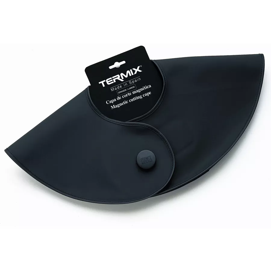 - Magnetyczny guzik – umożliwia idealne dopasowanie do szyi klienta, zapewniając komfort i ochronę podczas strzyżenia.
