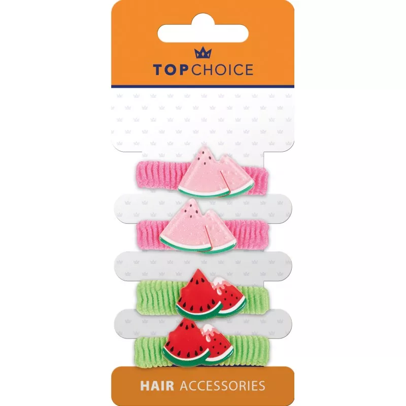 Odkryj wyjątkowe elastyczne frotki do włosów marki Top Choice, idealne dla dzieci. W zestawie znajdują się cztery urocze frotki w kolorach różowym i limonkowym, każda z piękną ozdobą, które dodadzą uroku każdej fryzurze.