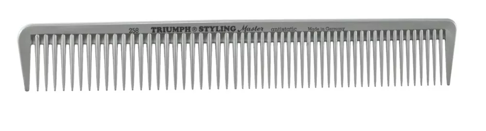 Odkryj perfekcję w pielęgnacji włosów z Triumph Master 258 - wyjątkowym grzebieniem do włosów w eleganckim szarym kolorze, stworzonym przez renomowaną firmę Hercules Sagemann. Ten grzebień łączy w sobie najwyższą jakość wykonania z innowacyjnymi rozwiązaniami, które zapewniają doskonałe rezultaty zarówno podczas strzyżenia, jak i codziennego czesania.