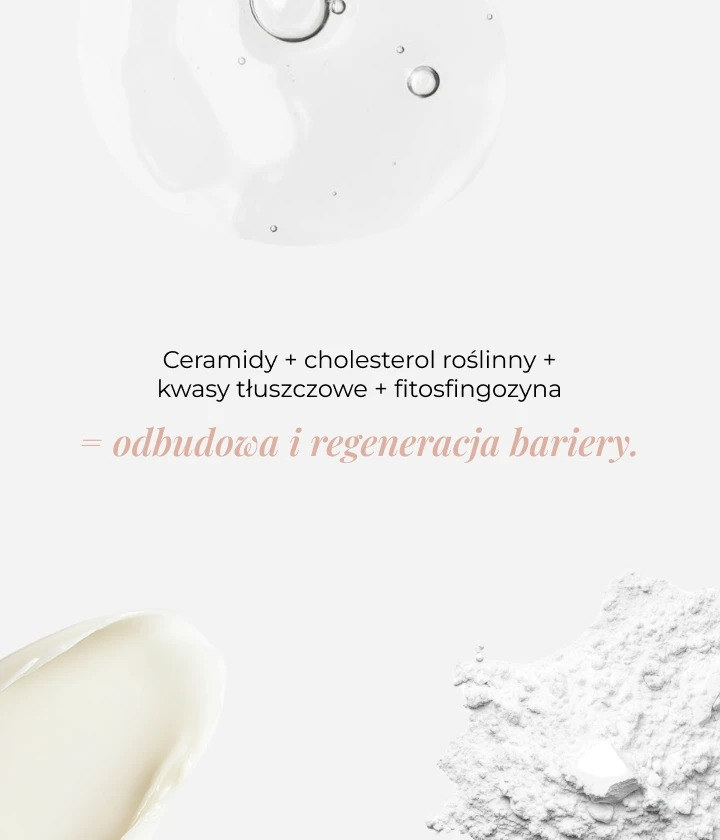 - Zaawansowana formuła z kompleksem 3 ceramidów (NP, AP, EOP) oraz cholesterolem i kwasami tłuszczowymi – skuteczna odbudowa bariery hydrolipidowej skóry.